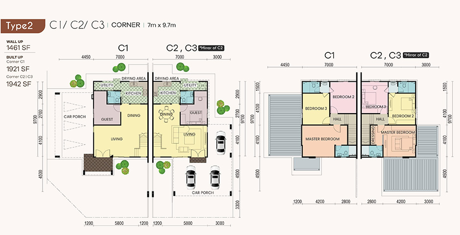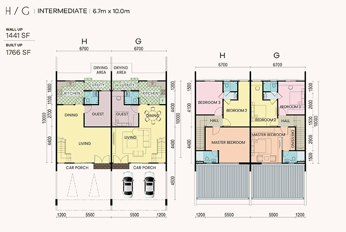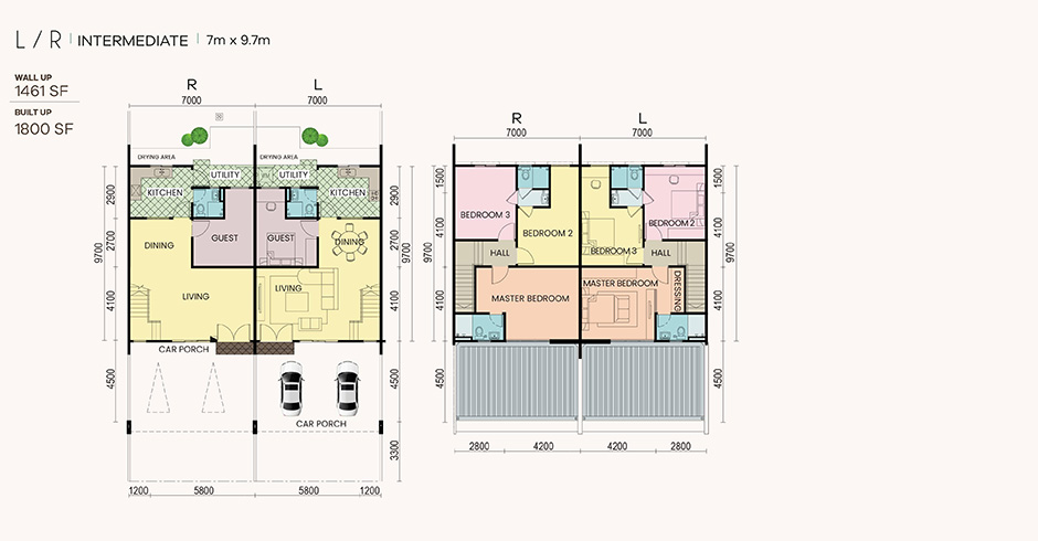 Ceramic/porcelain/homogenous tiles to living, dining, kitchen, utility, bathrooms, ground floor guest room, entry porch and car porch (excluding driveway crossing). Laminated flooring to staircase (without skirting) and all first floor bedrooms (with skirting). |